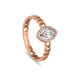 Brilliantly sparkling baguette diamonds and round diamonds cluster together to give the impression of a princess-cut solitaire set in an Emerald shape bezel for a statement look. This 18K Rose Gold and diamond ring can be easily paired with other baubles from your jewellery collection.18K ROSE GOLDVVS EF DIAMONDDiamond wt...