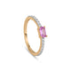 The cool white fire of round diamonds set in 18K White Gold is matched by the cooler hues of the central Emerald-cut purple Sapphire set parallel to the shank. The straight sides allow one to pair it with another band set flush against it. 18K WHITE GOLDVS-VS FG DIAMONDDiamond wt...